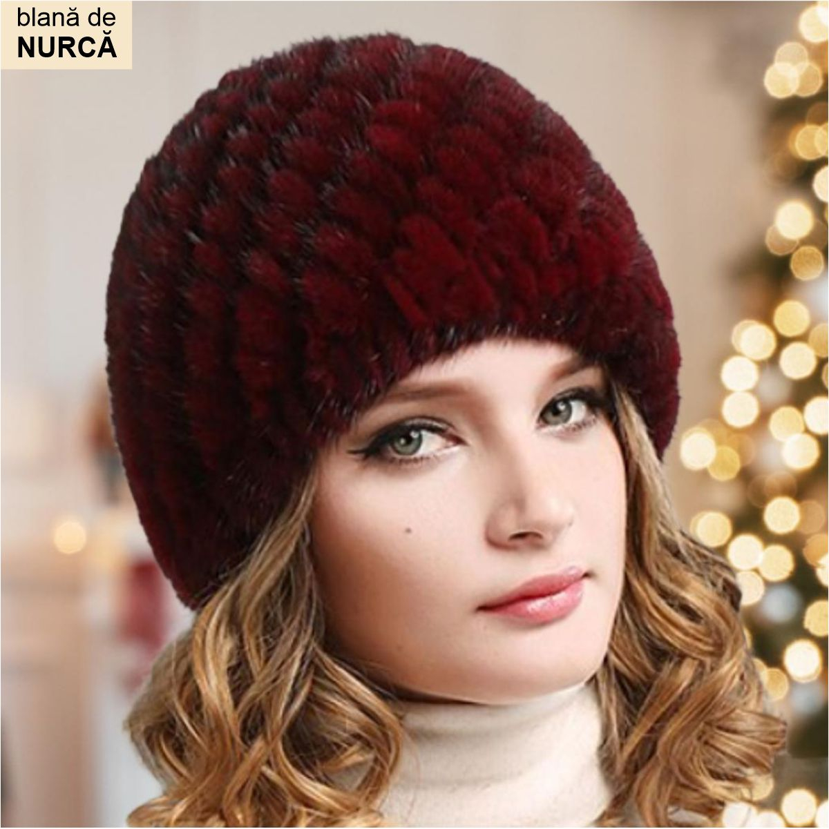 Si tu te poti bucura de o caciula de blana de calitate, eleganta si moderna alegand noul model de caciula de blana de nurca Gloria Lux, un model deosebit in tonuri profunde de GRENA, deopotriva frumos si calduros (cu captuseala groasa pe interior) o caciula de blana deosebit de rafinata, ce va da un aer de eleganta si rafinament aparte oricarei tinute - marime universala