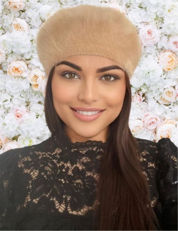 Bereta eleganta de lux din lana fina si pufoasa de Angora - Princess (MARO cappuccino) - marime universala