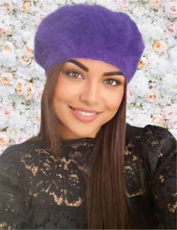 Bereta eleganta de lux din lana fina si pufoasa de Angora - Princess (MOV inchis) - marime universala