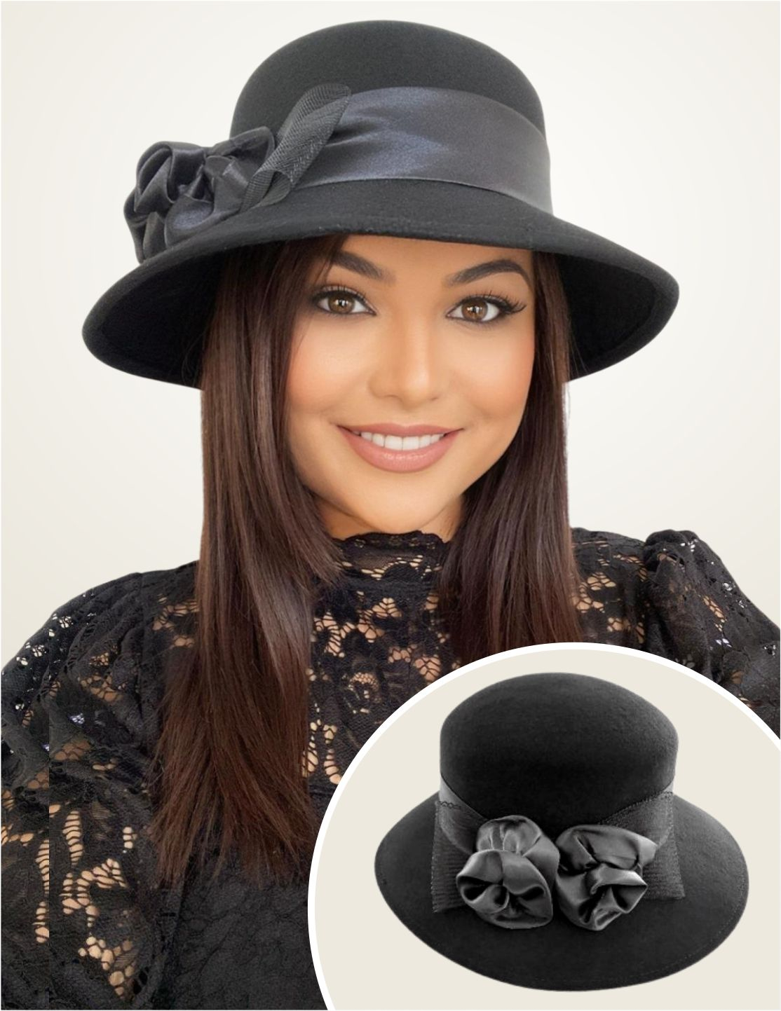 MODEL: palarie dama din fetru lux cu boruri medii (± 8 cm)