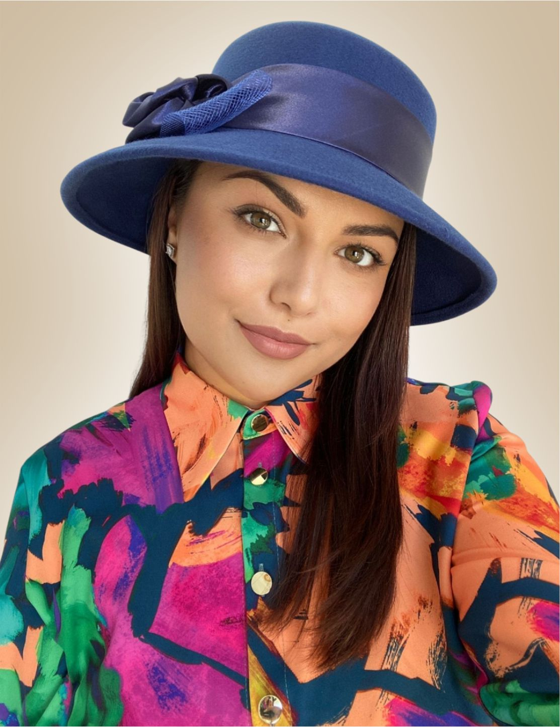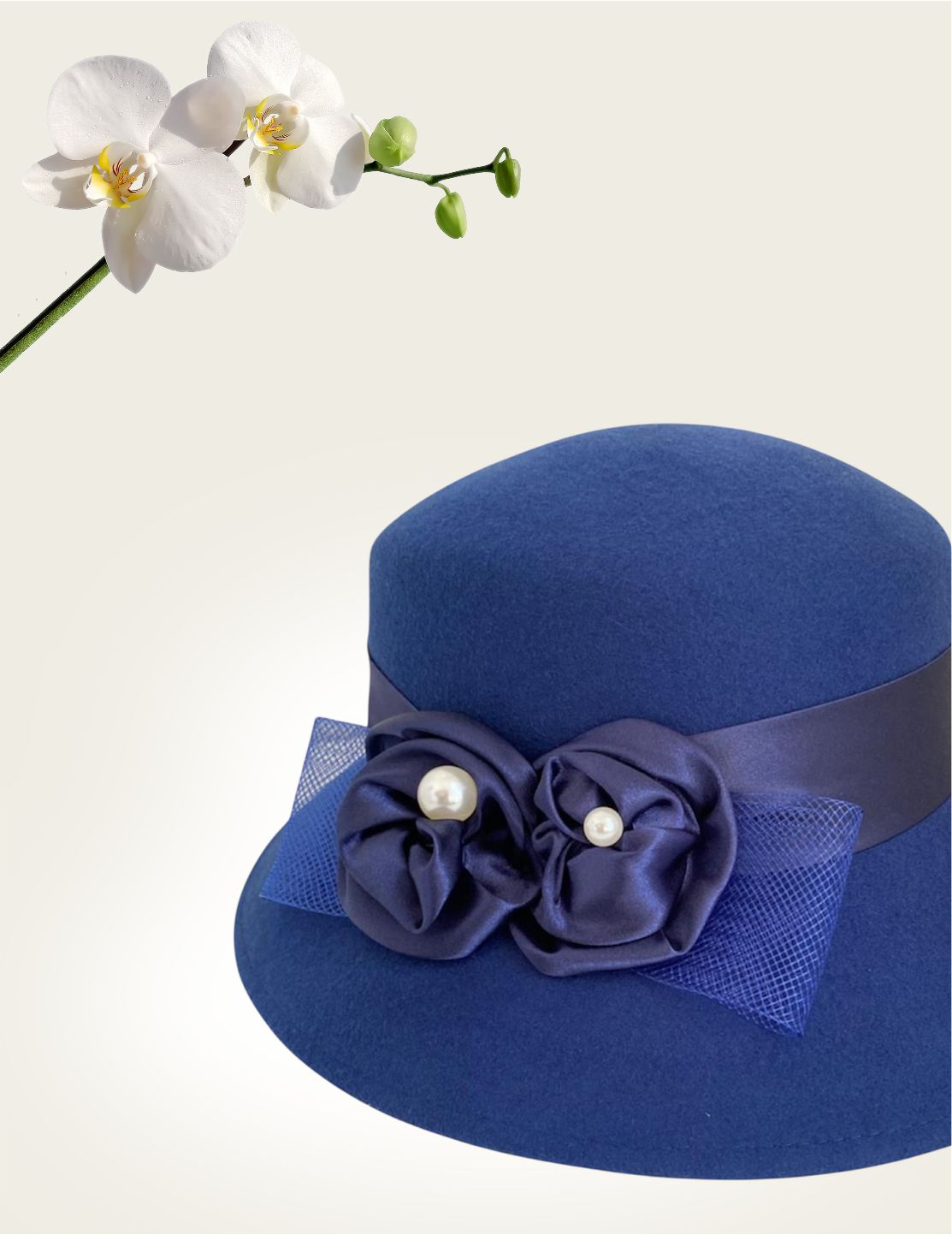 Palarie dama din fetru lux VENETIA LADY LUX (ALBASTRU) - marime unica, reglabila