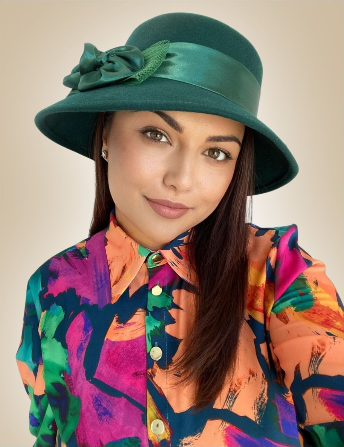 Palarie dama din fetru lux VENETIA LADY LUX (VERDE) - marime unica, reglabila