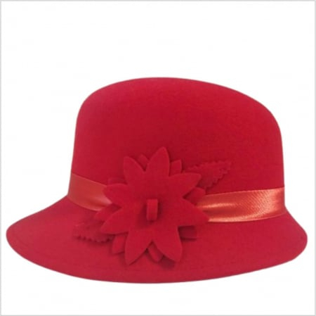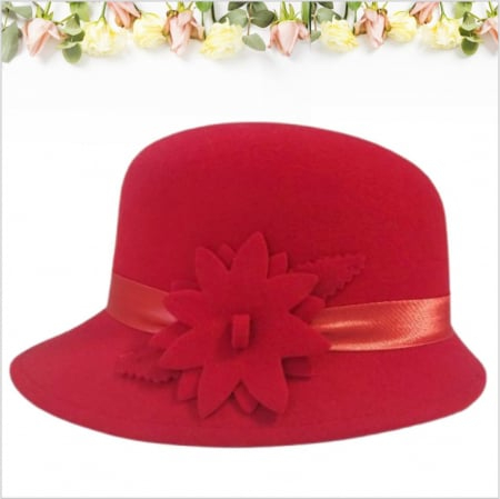 Palarie din fetru lux cu boruri tip sepcuta BARONESS LUX (ROSU) - marime unica, reglabila