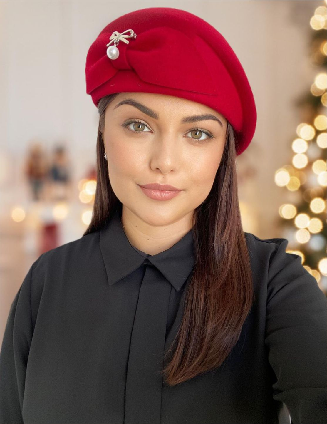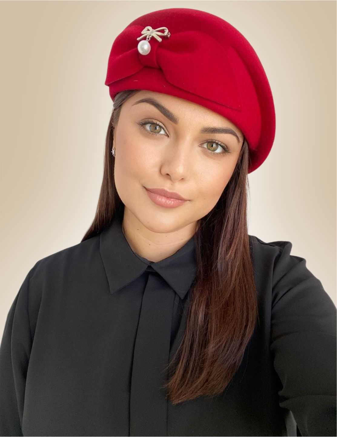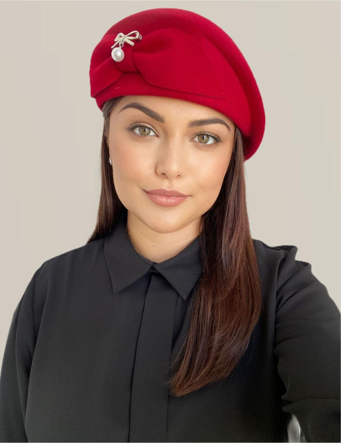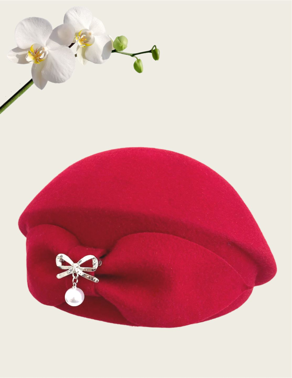 Palarie dama tip toca din fetru lux cu funda PRINCESS LADY (ROSU) - marime unica, reglabila