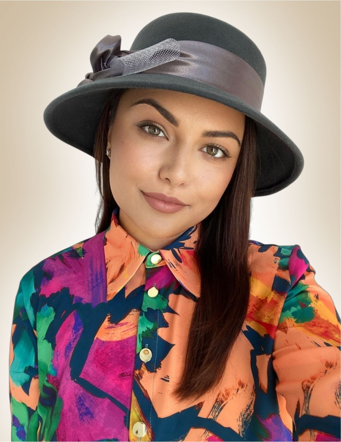 • MODEL: palarie dama din fetru lux cu boruri medii (± 8 cm)