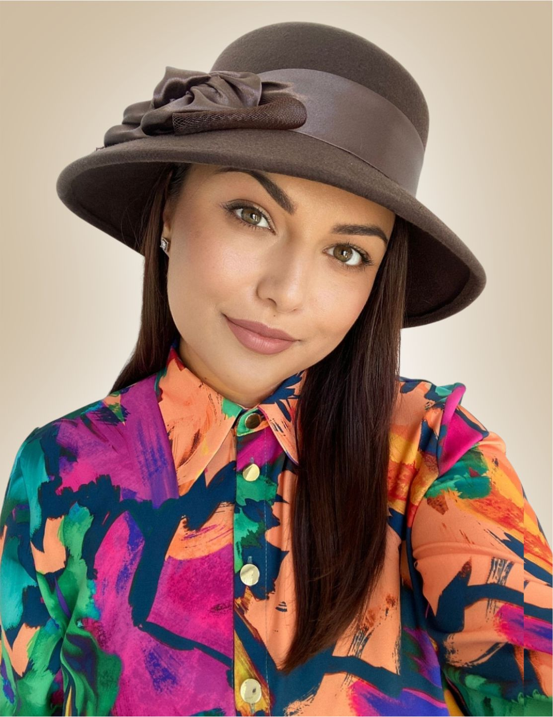 Palarie dama din fetru lux VENETIA LADY LUX (MARO mahon) - marime unica, reglabila