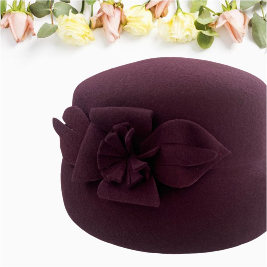 Palarie dama din fetru lux tip toca MISS MAGIC (GRENA prunia) - marime unica, reglabila