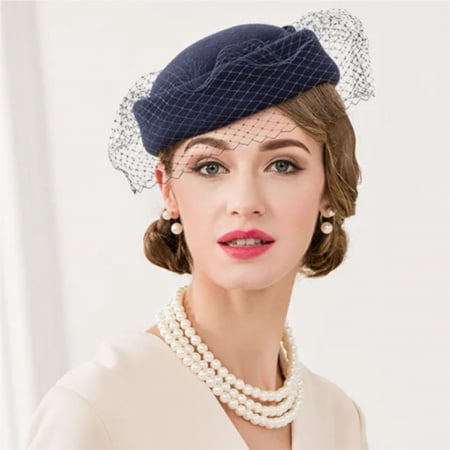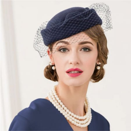 Palarie dama din fetru lux tip toca cu voaleta MISS PARIS (BLEUMARIN) - marime unica, reglabila
