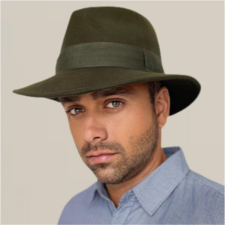 Palarie barbati din fetru lux cu boruri italiene ITALIAN STYLE (KAKI)