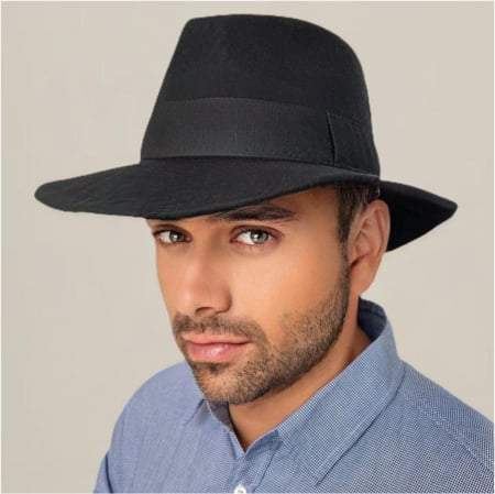 Palarie barbati din fetru lux cu boruri italiene ITALIAN STYLE (NEGRU)