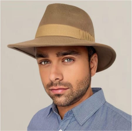 Palarie barbati din fetru lux cu boruri italiene ITALIAN STYLE (MARO deschis)