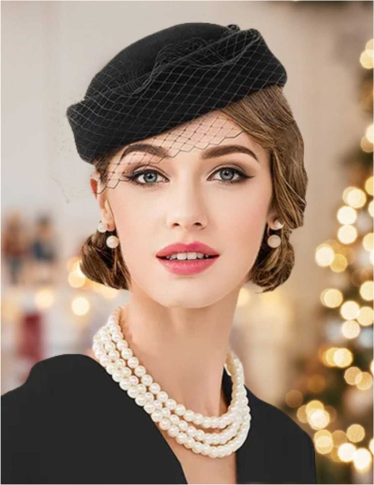 Palarie dama din fetru lux tip toca cu voaleta MISS PARIS (NEGRU) - marime unica, reglabila