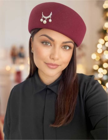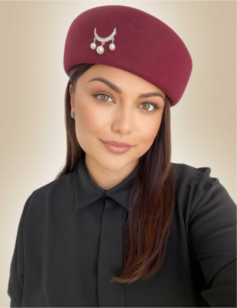 Palarii dama din fetru lux tip toca ROYAL LUX (GRENA) - marime unica, reglabila