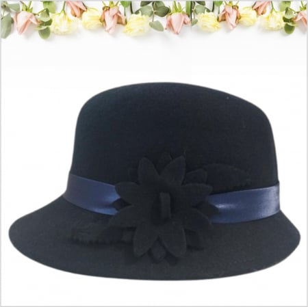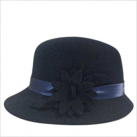 Palarie din fetru lux cu boruri tip sepcuta BARONESS LUX (BLEUMARIN) - marime unica, reglabila