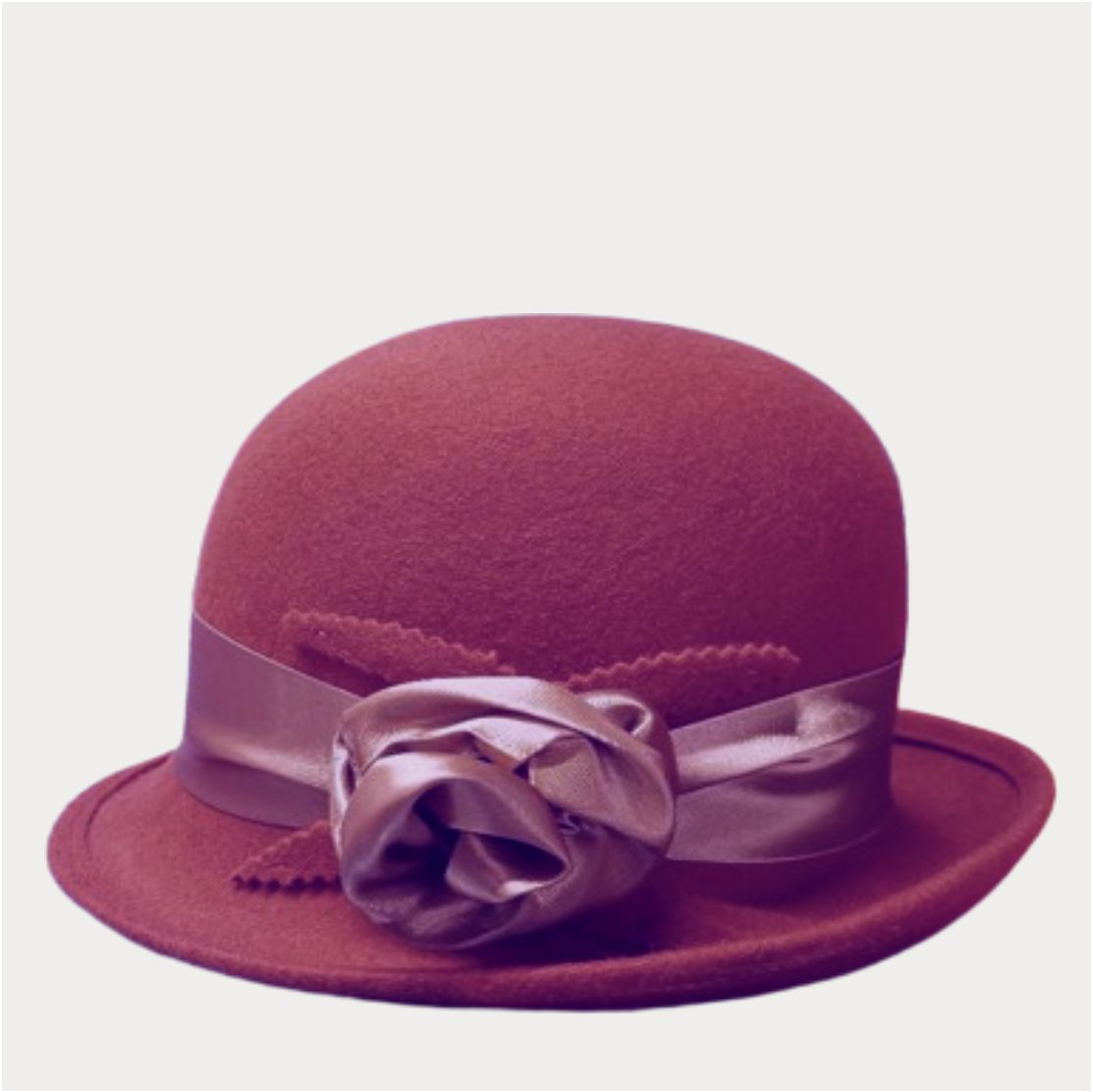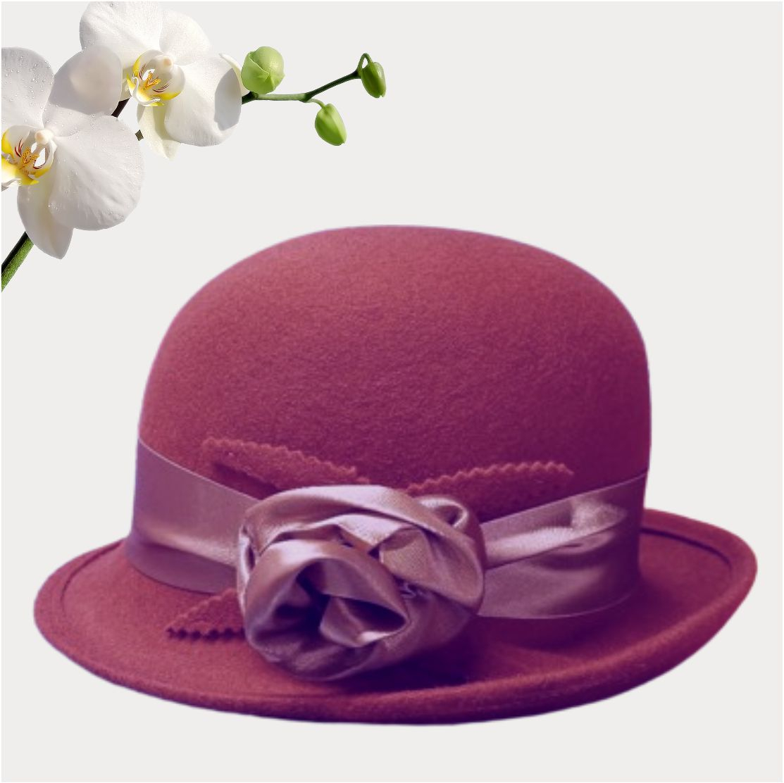 Palarie din fetru lux cu panglica din satin NOBLESS LUX (GRENA) - marime unica, reglabila