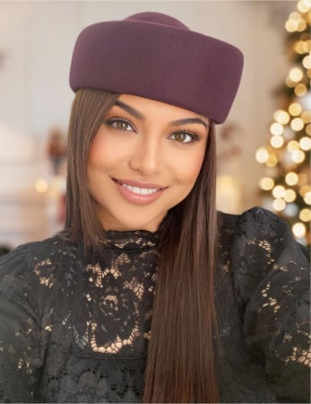 Palarie dama tip toca din fetru lux CONTESA LUX (GRENA prunia) - marime unica, reglabila