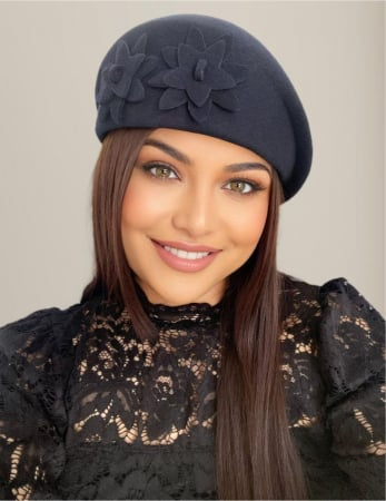 Palarie dama tip toca din fetru lux DUCESA LUX (BLEUMARIN) - marime unica, reglabila