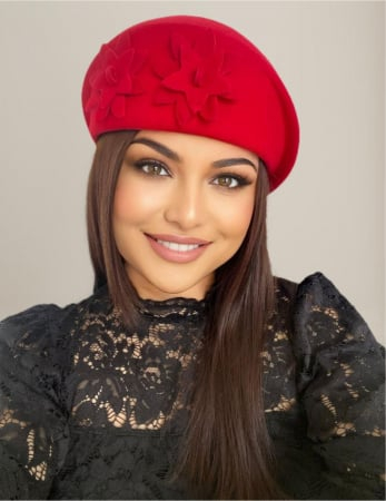 Palarie dama tip toca din fetru lux DUCESA LUX (ROSU) - marime unica, reglabila