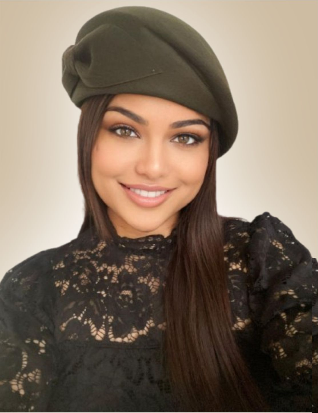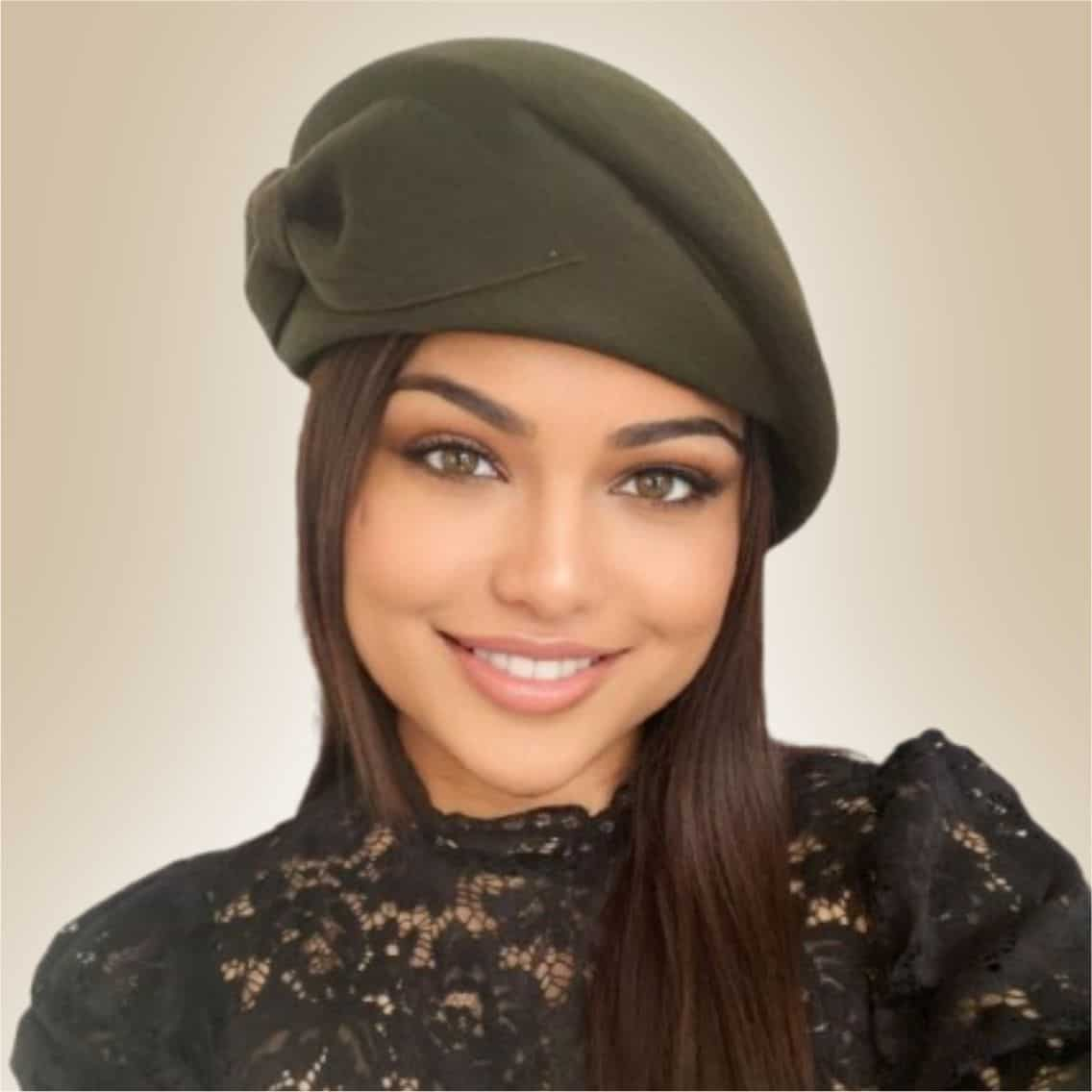 Palarie toca din fetru lux cu funda eleganta PRINCESS LUX (KAKI) - marime unica, reglabila